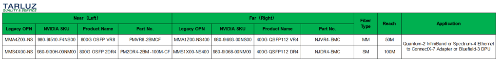 Optical Module Models Compatible with Application Scenario ①